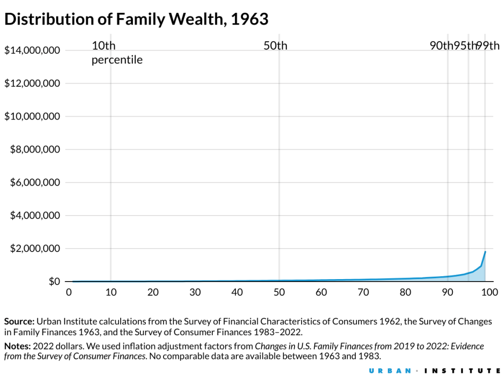 To illustrate the change, in 1963, the wealthiest families had 36 times the wealth of families in the middle class. By 2022, they had 71 times the wealth of those families. The top 10 percent now own about 70 percent of the nation’s wealth, with the bottom 50 percent owning 2.5 percent.